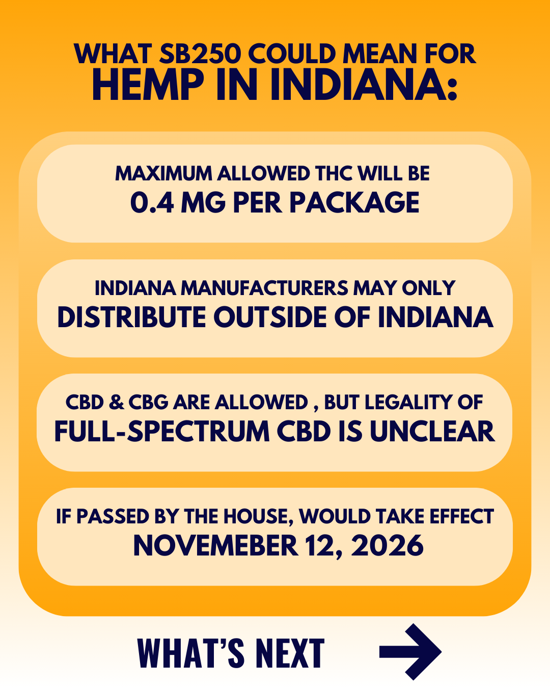 Indiana lawmakers are currently weighing SB 250, a bill that would limit THC to just 0.4mg per package—effectively banning nearly all hemp products in the state. We recently testified at...