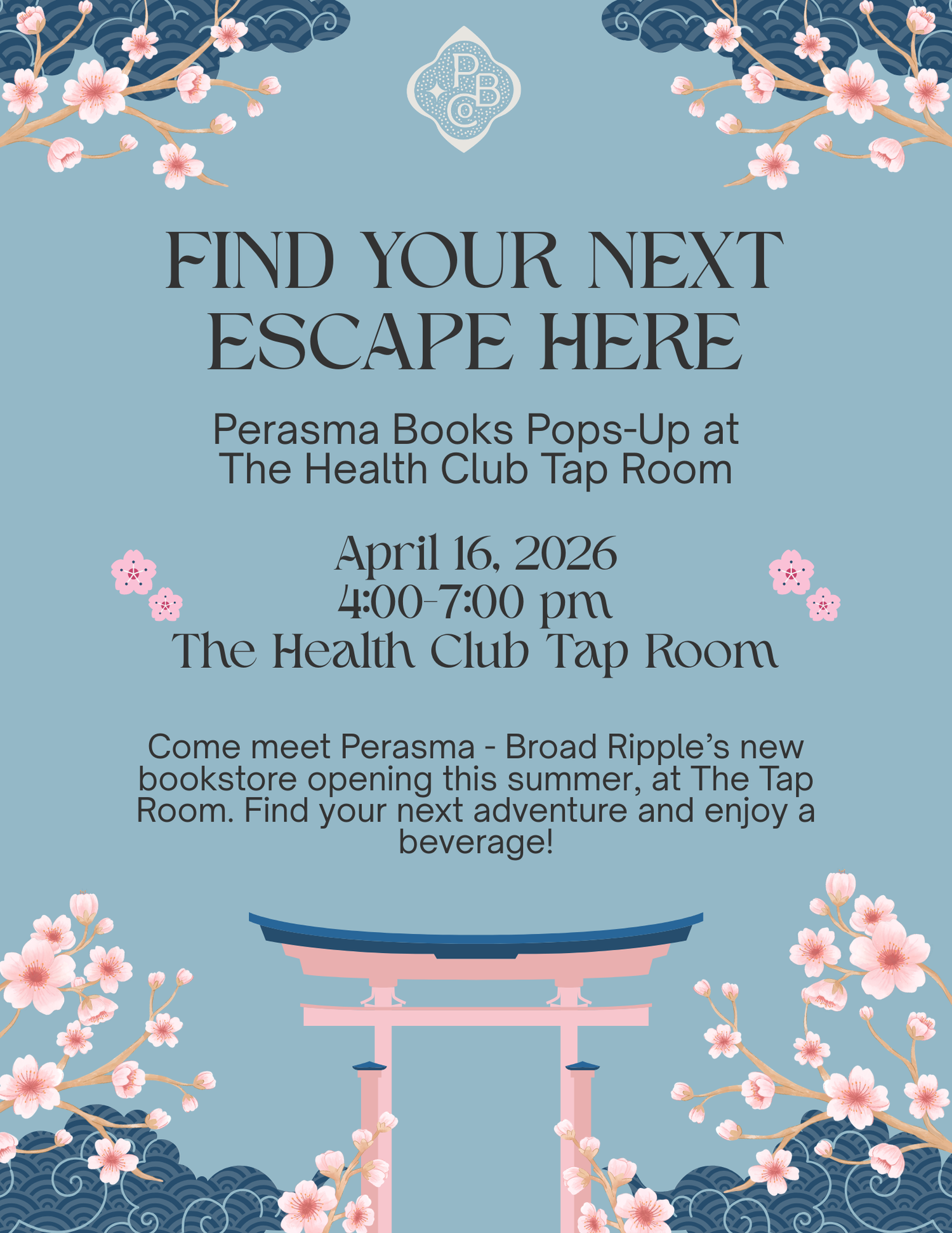 Broad Ripple's Newest Bookstore - Perasma Book Co. is hosting a Book Pop-Up at The Health Club on April 16th from from 4-7pm!