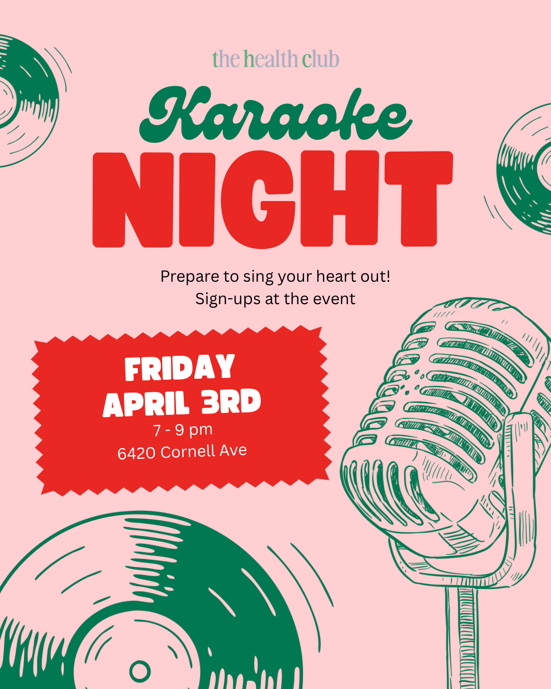 First Friday Karaoke Night at The Health Club from 7-9pm
