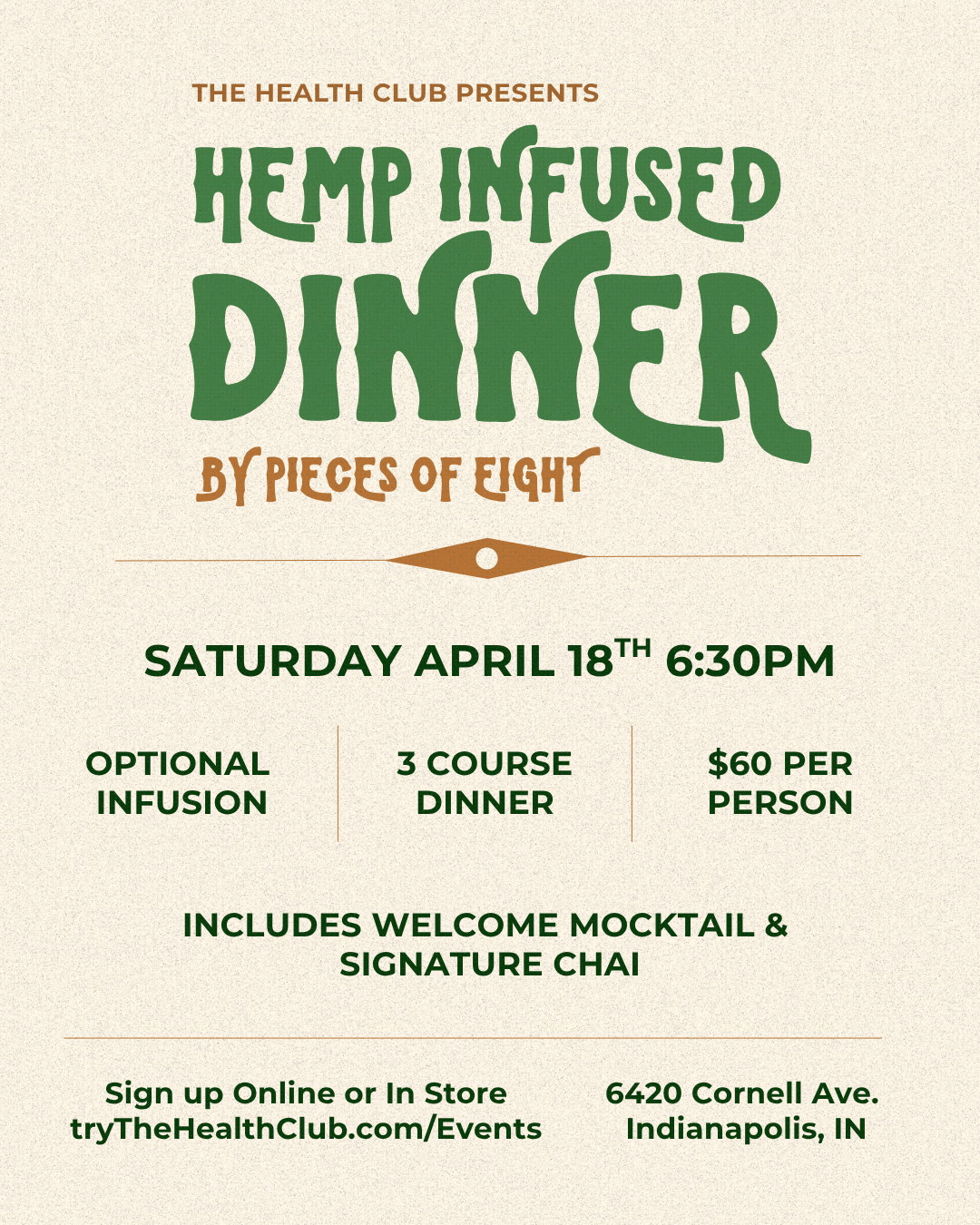 Pieces of Eight Pop Up 3 Course Cannabis Infused Dinner Saturday April 18th at 6:30pm.